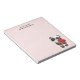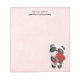 A notepad with an adorable watercolor drawing. An adorable black and white panda bear carrying a bouquet of roses.