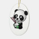 Cute Panda Eating Rice from Bowl with Chopsticks Ceramic Ornament
