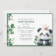 Cute Panda Greenery Gender Neutral Baby Shower Invitation