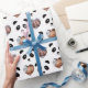 Cute Panda Pattern Black and White Photo Wrapping Paper