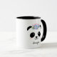 Cute panda queen personalized mug. Pretty chubby kawaii panda face with pink cheeks wearing a pink crown and blue flower arrangement. Easily add your name to personalize the mug. You can change the mug color. Lovely gift for a girl, a daughter, girlfriend on a birthday or other special occasion.
