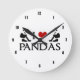 I love pandas. A pretty panda clock with a red heart and two panda bears chewing bamboo.
