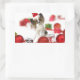 Cute Papillon Dog Christmas Santa Hat Rectangular Sticker