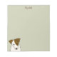 This personalized Jack Russell dog note pad features an adorable cartoon Parson / Jack Russell Terrier with an endearing head tilt - the dog has brown ears and a brown patch around her left ear - customize the name and background color, shown here in light sage - Jack Russell Terrier with Head Tilt design © katz_d_zynes 2019 | see more JRT/PRT gifts in katzdzynes' "Gifts for Jack Russell Terrier lovers" collection >> https://www.zazzle.com/collections/119111196556597948