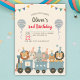 Plain white envelopes are included with paper invitations and will come to fit the invitation size you select. If you don’t need the envelopes, you may choose to not receive them by selecting the dropdown below "Envelopes" and choosing "None." If you’d like to have a design on your envelopes, you can browse all of these available envelopes to find the design that complements your Cute Party Animals On A Charming Train Invitation.
