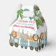 Celebrate your special occasion with these adorable personalized safari favor boxes! Featuring a whimsical train chugging along with a crew of the cutest safari animals imaginable. Each critter sports a festive party hat, setting the mood for fun. Personalize these charming boxes with your star's name and a special message for a unique and unforgettable party favor.