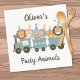 Celebrate any occasion with these adorable personalized napkins featuring a delightful safari train! A cast of whimsical safari animals, each sporting a festive party hat, chugs along on a charming train. These napkins are perfect for adding a touch of fun and personalization to your next birthday party, baby shower, or any gathering.