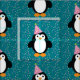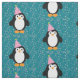 Cute cartoon penguin wearing a party hat with confetti pattern background fabric.