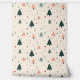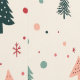 A charming holiday pattern featuring whimsical Christmas trees in pastel green and pink, with scattered dots and snowflakes on a soft cream background. Perfect for festive decor or seasonal products.