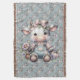 Cute Pastel Cow in Overalls with Flowers Throw Blanket