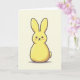 This design shows a single cute bunny 🐰 centered on a creamy off-white background, drawn in soft pastel yellow with a rounded, chubby shape that feels like it’s leaning in for a friendly cuddle. Two long upright ears rise from the top, giving it an alert but gentle look, as if it’s listening closely to someone it cares about. Its face is simple with two round dark eyes, a tiny curved smile, and pink blush dots that suggest a shy, affectionate mood. A small round tail sits at the lower back, and a faint shadow underneath keeps the bunny grounded on the page. The surface has a light grainy texture, like a sugary coating, while a dark outline traces the edges to keep the shape crisp and easy to read. Any greeting text would sit neatly above or below the bunny in a soft gray or muted brown, leaving plenty of open space around the character 🌷. The bunny’s pastel yellow body is outlined in dark ink, with rosy cheeks and a pale shadow pooling just beneath its feet.
