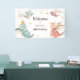 Cute pastel birthday party welcome banner featuring playful dragon, star and cloud illustrations paired with fun, stylish typography on different color backgrounds. You can find more matching items from this collection in my store.