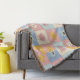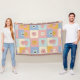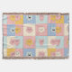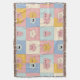 Adorable pastel blanket design featuring a patchwork pattern of happy clouds, hearts, and stars in soft hues of yellow, pink, blue, and cream. Perfect for cozy, cheerful, and whimsical home decor.