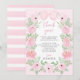 Elegant preppy baby girl shower thank you card showcasing cute pastel pink bow ribbon surrounded by pink watercolor floral wreath.