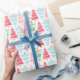 Wrapping Paper featuring cute colorful pink and pastel Christmas tree pattern on the white background. Easily personalize the text. - Kate Eden Art.
