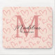 Cute Pastel Pink Heart Pattern Script Monogram Mouse Pad