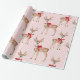Cute Pastel Pink with Deer and Red Bow Wrapping Paper