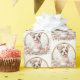 Pastel colors birthday wrapping paper featuring a cute puppy French Bulldog with "Happy Birthday".