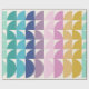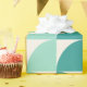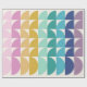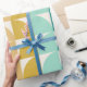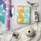 This cute wrapping paper features a pattern of simple geometric shapes in a pastel rainbow color palette.