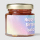 Celebrate your little girl's birthday with these pretty pastel rainbow sparkle party favor honey jars that feature beautiful white letters with purple shadow for your child's name. This magical gift exemplifies the enchantment of childhood.