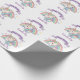 This cute and colorful wrapping paper features a beautiful illustration of a unicorn and pastel colored rainbow. Little stars in matching colors surround the rainbow. A sample Happy Birthday banner is printed above the unicorn, and a sample name is printed below in an elegant purple script font. You can personalize the gift wrap to include your own custom name or text.