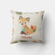 This personalized throw pillow features a cute, whimsical fox created in a patchwork style. The fox is designed with a mix of colorful, patterned fabrics, including polka dots, stripes, and leafy textures.