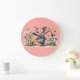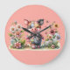 Cute Patchwork Piglet in Floral Garden Large Clock