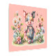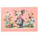 This delightful illustration features a cute pig crafted in a patchwork style, dressed in charming denim overalls and surrounded by a blooming fantasy flower garden. With its big round eyes, stitched textures, and pastel-toned body, the piglet exudes a whimsical innocence that perfectly complements nursery walls or children's playrooms. The floral animal illustration blends soft color palettes with enchanting springtime energy, making it ideal for a boho-inspired or kawaii-themed kids' space. The balanced composition of cheerful flowers, fluttering butterflies, and stitched textures gives it a cozy, storybook feel. This piece is especially suited for whimsical nursery art or pastel woodland decor, inviting warmth and imagination wherever it's displayed. AI generated artwork.