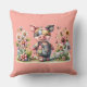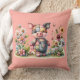 Cute Patchwork Piglet in Floral Garden Throw Pillow