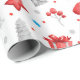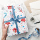 Whimsical wrapping paper for the gnome lovers! There's cute little gnomes wearing red hats and blue hats, Christmas presents, red and blue candy canes, Christmas trees, berries, stars and lots of red, white and blue polka dots.