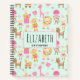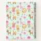 A personalized spiral notebook with a whimsical pattern featuring a collection of delightful children's toys and animals.