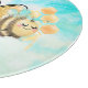 Cute design with "Peace Love Bees" text, sparkly black peace hand symbol, gold doodle heart and whimsical bee on a background of watercolor clouds.