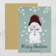 Cute Peaceful Snowman Winter Blue Christmas Holiday Card