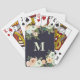 Cute Peach Mint Flowers Black Monogram Initial Poker Cards