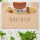 Kitchen Towel with an illustrated design of a smiling peanut butter jar that is standing between two piles of peanuts. The words “Peanut Butter? Peanut Better!” show above and below the cartoon character. All of the words can be customized.