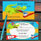 A cute business card for a pediatric dental clinic featuring a colorful crocodile with a toothbrush (you know they have a LOT of teeth to brush! :-))