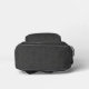 A cute dog's face is peeking out from a dark gray linen fabric.