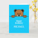 Cute cartoon illustration of a peeping bear, a fun way to send birthday wishes to kids.