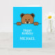 Cute Peeping Bear | Simple Cartoon on Blue Card