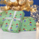 Share some southern holiday cheer this season with this wrapping paper featuring a cute Pelican wearing a Santa hat and the word "Noel" with a wreath for the letter "O" on a cheery green background.