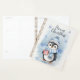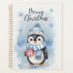 A charming winter illustration of an adorable little penguin wearing a blue striped hat and scarf, bringing a cozy and festive vibe. The soft snowflakes and gentle blue tones in the background create a magical winter atmosphere. Perfect for Christmas cards, posters, stickers, and seasonal crafts!