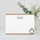 A cute black and white penguin drawing. Red and green stripes. Baby animal note cards with monogram. Edit initial and monogram to customize. Gift idea for kids.