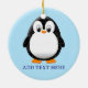 A cute black and white penguin drawing. Baby animal ceramic ornaments. Snow version. Edit text to customize. Gift idea for kids.