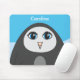 Customizable cute penguin mousepad with a geometric illustration of a cute cartoon baby penguin with big blue eyes and a customizable name. I drew this image after the lovely penguin drawing of my 6 year old daughter. This cartoon penguin mousepad will make a great gift for a girl who loves penguins and cute cartoon animals.
