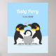 Personalize this poster that has the illustration of a penguin family with the baby penguin chick in the embrace of its parents. Makes a cute decorative wall piece for the baby nursery.