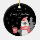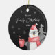 Add a cute touch to your family holiday celebration with this adorable family penguin keepsake ornament. The Christmas ornament has an adorable penguin wearing a Santa hat and scarf and holding a cup of hot cocoa with marshmallows and a candy cane. In the background there is a snowy tree and snowflakes. Add your family name, the year, and the text Family Christmas. Text may be edited per your preference.