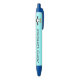 This awesome personalized pen features a cute penguin character with a white tummy, big blue eyes with black pupils and cute orange feet and beak. This charming little winter bird is sure to delight children and adults. The penguin sits on an icy pale blue background to remind him of his chilly Arctic home. There is customizable text on the pen so you can personalize it with message of your choice.