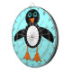 This awesome dart board features a cute penguin character with a white tummy, big blue eyes with black pupils and cute orange feet and beak. This charming little winter bird is sure to delight children and adults. The penguin sits on an icy pale blue background to remind him of his chilly Artic home.