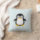 Cute Penguin Design Blue Polka Dot Background Throw Pillow