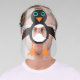 This face shield features a cute penguin character with a white tummy, big blue eyes with black pupils and cute orange feet and beak. This charming little winter bird is sure to delight children and adults. The penguin sits on an icy pale blue background to remind him of his chilly Artic home.